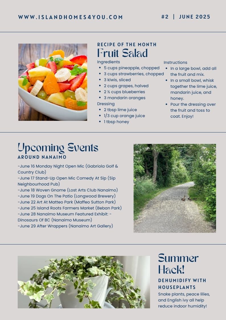 As we head into summer, we're bringing you the latest on the real estate market in Nanaimo and Vancouver Island, along with helpful homeowner tips, a seasonal recipe, and a list of exciting local events happening this month.